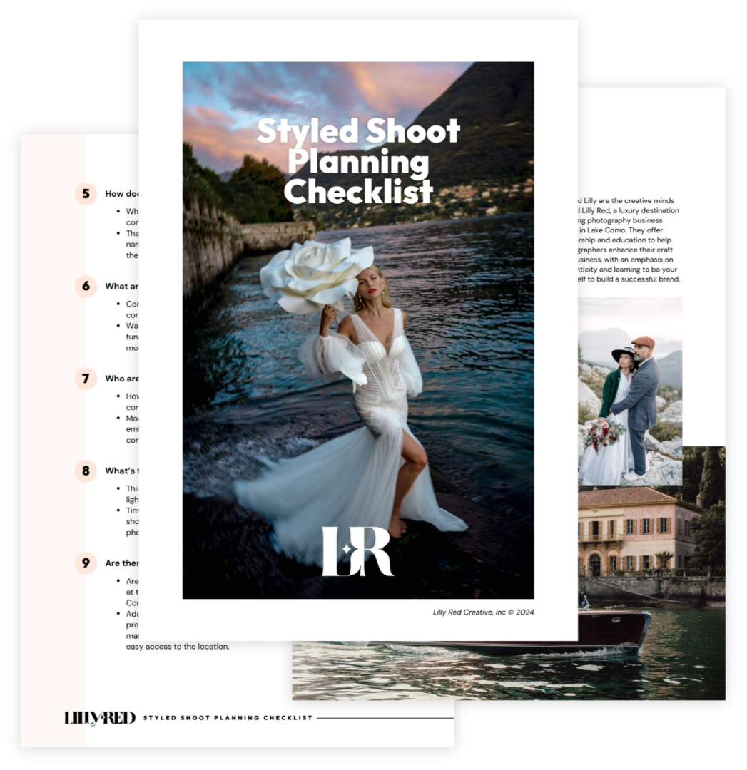 Learn how to plan and execute styled shoots to elevate your portfolio and win your dream clients. This extensive guide includes a toolkit, resources, templates, and a behind-the-scenes video, giving you the most comprehensive styled shoot training ever.